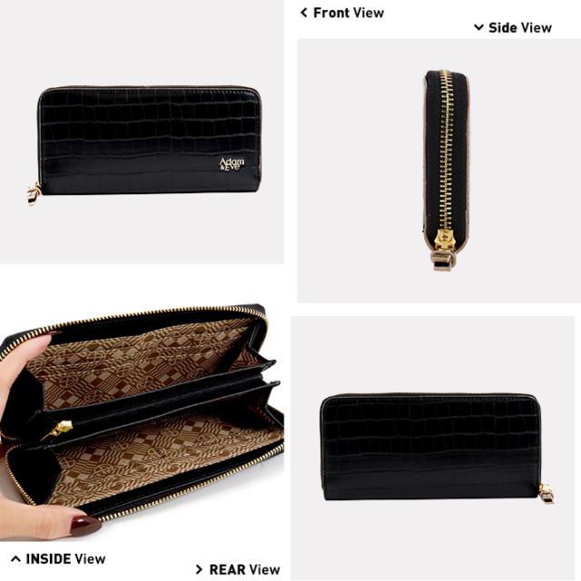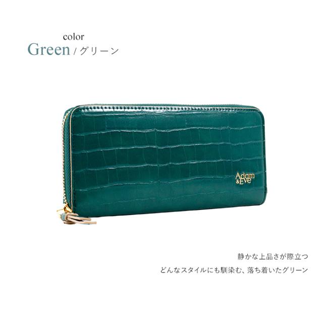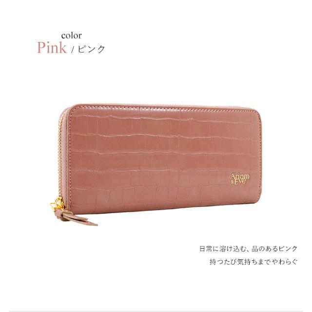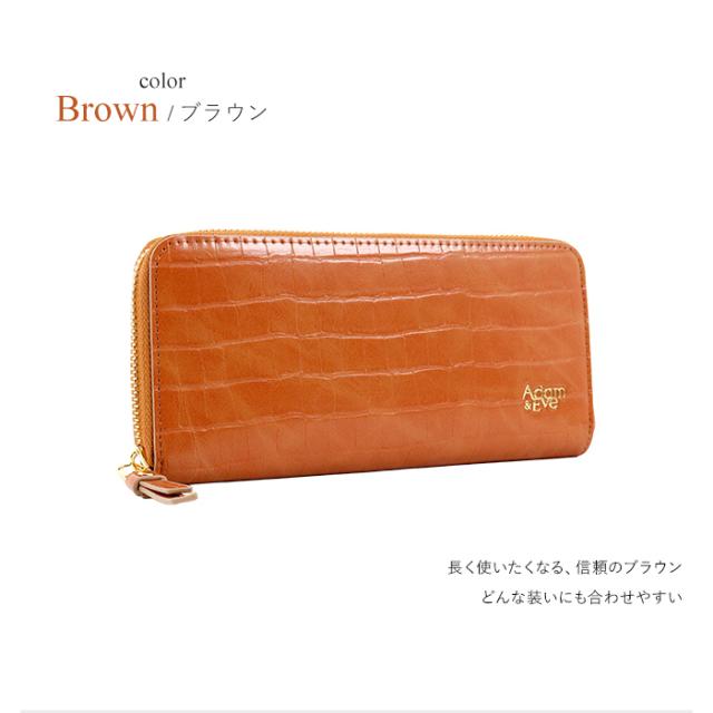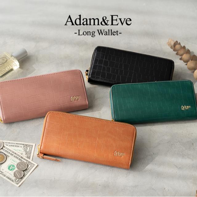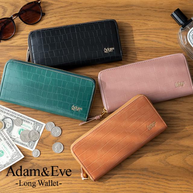 長財布 レディス ラウンドファスナー クロコ 型押し スリム おしゃれ エレガント 高見え Adam&Eve アダムアンドイブ レディス 母の日 プレゼント ギフト ラッピング 送料無料