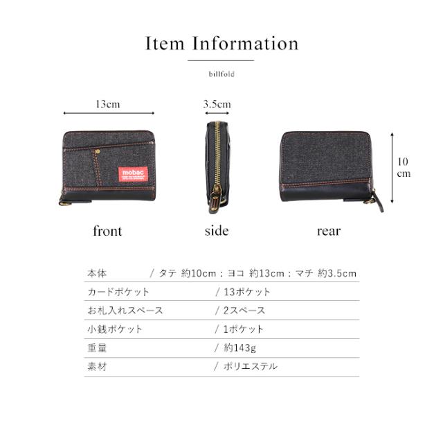 mobac 財布 メンズ 2つ折り ラウンドファスナー デニム D管 大容量 人気 おしゃれ ギフト プレゼント