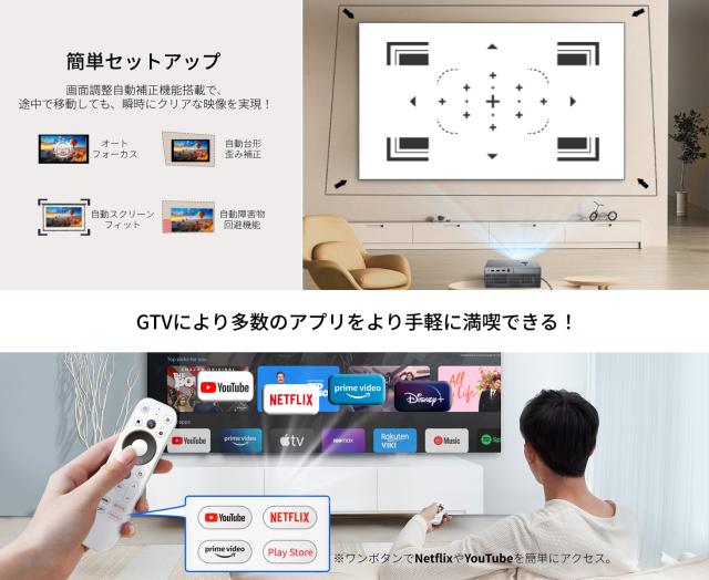 【Netflix公式ライセンス&自動フォーカス&AI技術搭載】4Kプロジェクター 家庭用 ビジネス両用 1000ASNI DoIby対応 Android TV・YouTube・Prime Video搭載 プロジェクター 真1080P 自動台形補正&自動障害物回避&スクリーンフィット/5G WiFi/双方向Bluetooth 5.2