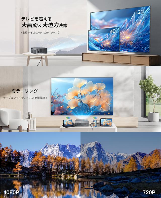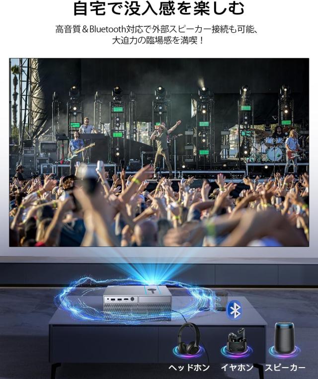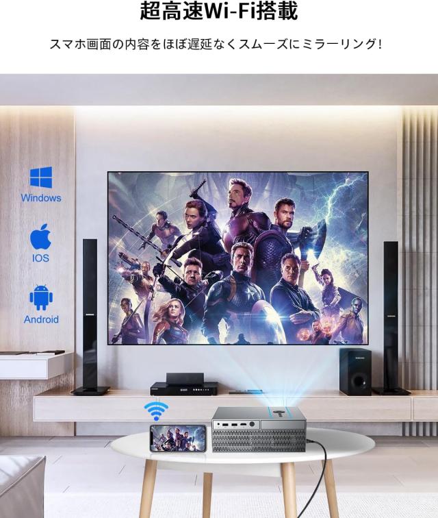 【超高速Wi-Fi 6・Bluetooth5.2】この ぷろじえくたー 家庭用は、高精度チップを搭載し、2.4GHz/5GHzデュアルバンドとWi-Fi 6をサポートします。強力かつ安定した超高速通信を実現します。iOS/Android/Windowsデバイス(スマホ/タブレット/PCのミラーリング対応)へワイヤレス接続が可能の プロジェクター 小型 で、遅延のないオンラインゲーム、映画、動画を快適に楽しむことができます。さらにBluetooth 5.2を内蔵し、お好みのスピーカーやワイヤレスヘッドホンに簡単接続します。