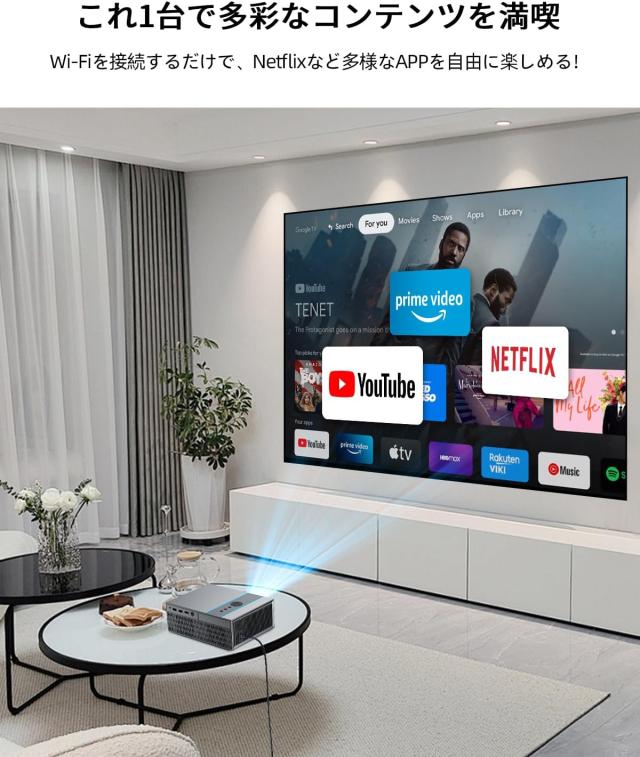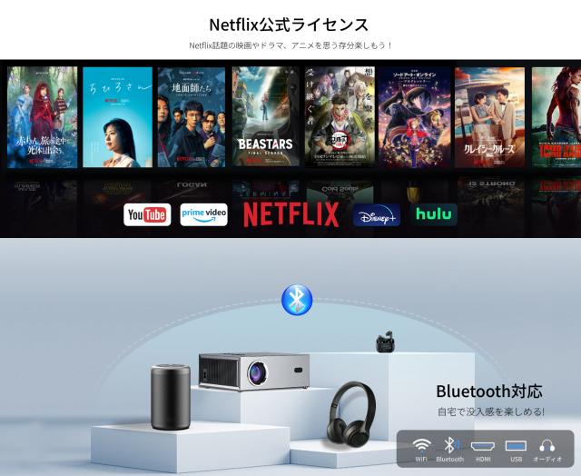 【Netflix公式認証ホームプロジェクター】このプロジェクターX6ATVは、Netflixの公式認証を受けているため、Netflixアプリを直接プロジェクターで簡単に起動し、映画やドラマ、オリジナルコンテンツを大画面で楽しむことができます。面倒な設定や外部デバイスの接続なしで、手軽にNetflixのコンテンツを投影でき、まるで映画館のような体験が自宅で可能になります。注:他のNetflixプロジェクターの Netflix 機能とは異なり、X6ATVプロジェクターの Netflix 機能は正式に認可されているため、映画を視聴する際に著作権制限はありません!