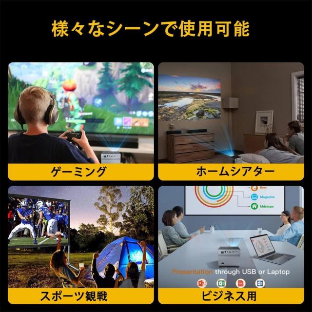 【多彩な互換性・超長い寿命・省エネ】プロジェクターはHDMI、USB、3.5mmオーディオ端子を装備し、PC/DVDプレイヤー/タブレット/USBメモリ/PSゲーム機/スピーカー/ヘッドホンなど多様な機器との接続を可能にします。さらに、密閉構造のレンズを採用します。ほこりの侵入を防ぐため、1年以上使用しても画面に黒点(ダストスポット)が発生しにくく、常にクリアな映像を維持します。「高品質・省電力・長寿命」を実現する最新ランプ技術を導入し、最大80,000時間の超耐久設計。長期間にわたり安心して使用します。