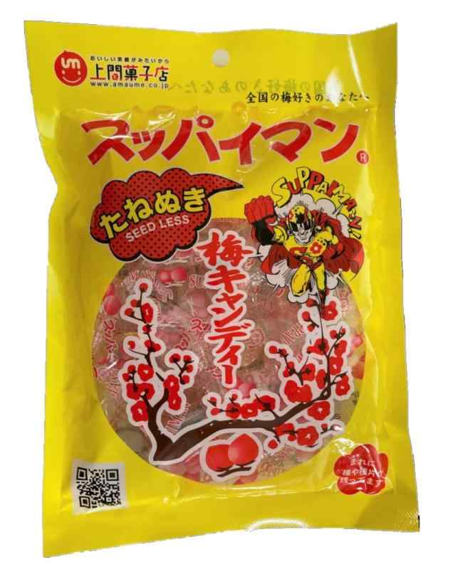 スッパイマンキャンディ たねぬき 10個入り × 5袋 スッパイマンの味、食感をそのままに 種がなくなって、食べやすくなりました まれに種や種片が残ってます。 乾燥梅のすっぱさとべっこう飴のまろやかさが 見事にマッチした一品です スッパイマンは 禁煙で口さびしい方にも 梅干しは熱中症対策に必要な『食塩』、『クエン酸ナトリウム』、『塩化カリウム』が全て含まれている食べ物です。