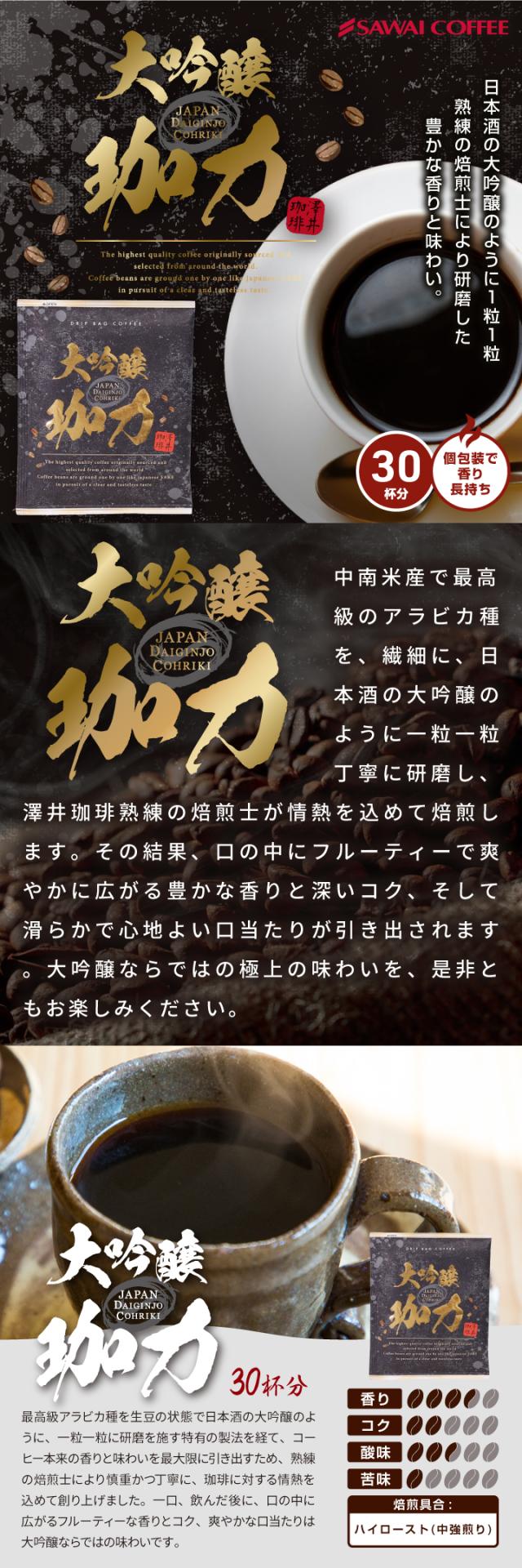 ドリップバッグ コーヒー 珈琲 "開けた瞬間、香りふわり。大吟醸仕立ての上質な一杯" 澤井珈琲 ドリップコーヒー 大吟醸珈力 13g×30袋 コク深い 大容量 セット