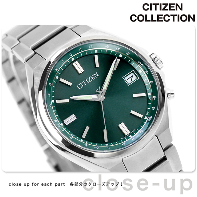 正規品 7年保証キャンペーン 送料無料 シチズン コレクション ダイレクトフライト チタン 電波ソーラー 日本製 エコ・ドライブ電波 メンズ 腕時計 CB1160-55W CITIZEN COLLECTION アナログ グリーン ◆ケースとバンドにスーパーチタニウムを採用した、ベーシックな3針タイプのエコ・ドライブ電波時計。段差を付けた見返しリングが、シンプルなデザインの中にスポーティな印象をプラス。V字の溝を刻んだ少し太めのバーインデックスを12時、6時、9時の3カ所に配置し、デザインのアクセントにしています。ワールドタイムの表示は、都市名の代わりに時差表記を採用し、文字板をすっきりとしたシンプルなデザインにまとめています。 発売日:2026年2月発売