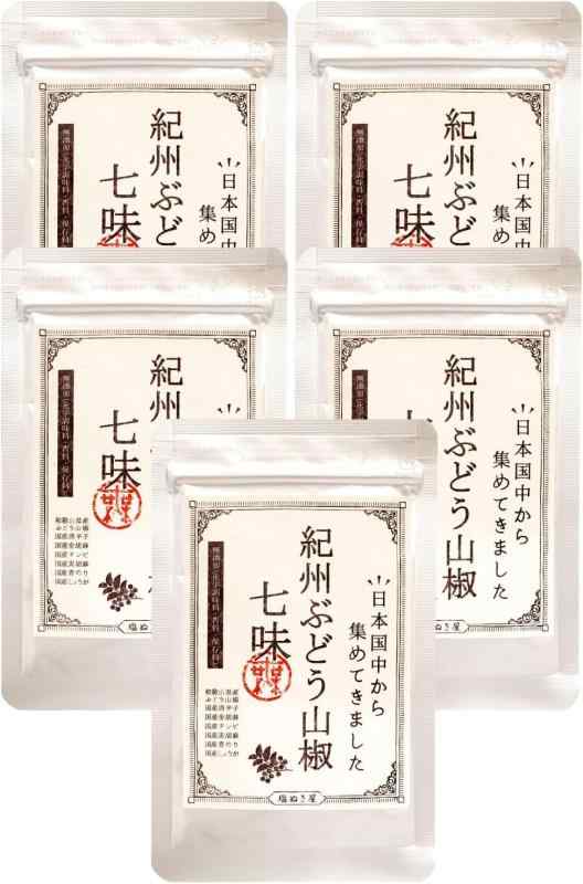 紀州 山椒七味 国産100% 食塩不使用 無添加 ぶどう山椒 塩ぬき屋 生姜 陳皮 唐辛子 金胡麻 ちんぴ 黒胡麻 青のり 七味唐辛子 (13グラム (x 5))