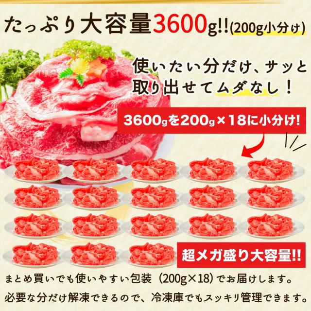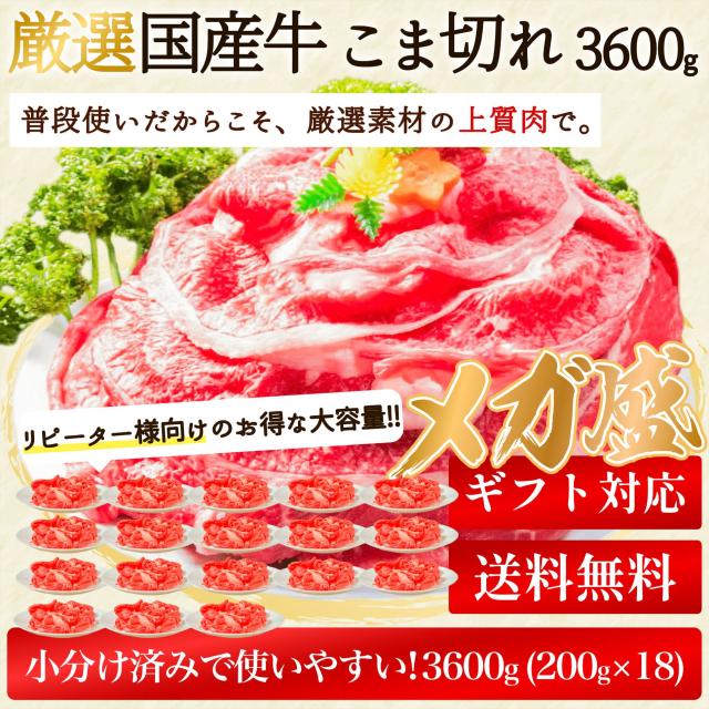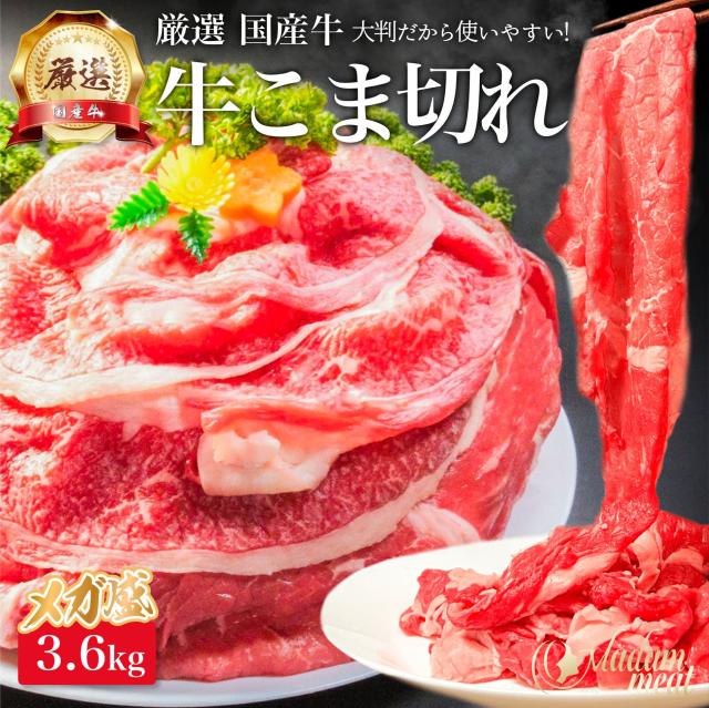 厳選 国産 牛肉 こま切れ 3.6kg 訳あり 焼肉 すき焼き しゃぶしゃぶ 用 牛肉 赤身 お肉 食品 食べ物 切り落とし 牛こま 小分け 冷凍 送料無料 メガ盛り 業務用 牛丼用 カレー用 細切れ 小間切れ 薄切り わけあり 激安 ギフト プレゼント 早割 お礼 食材 お歳暮 御歳暮 お年賀