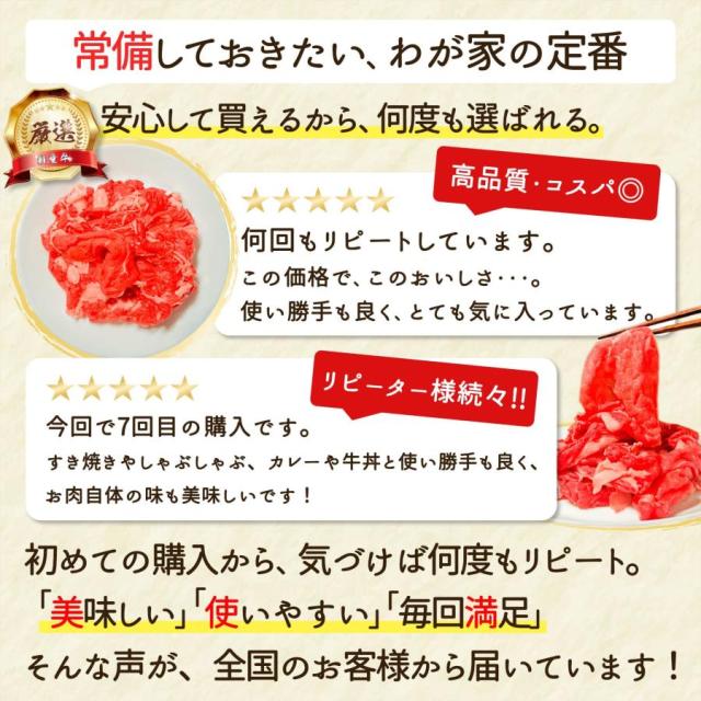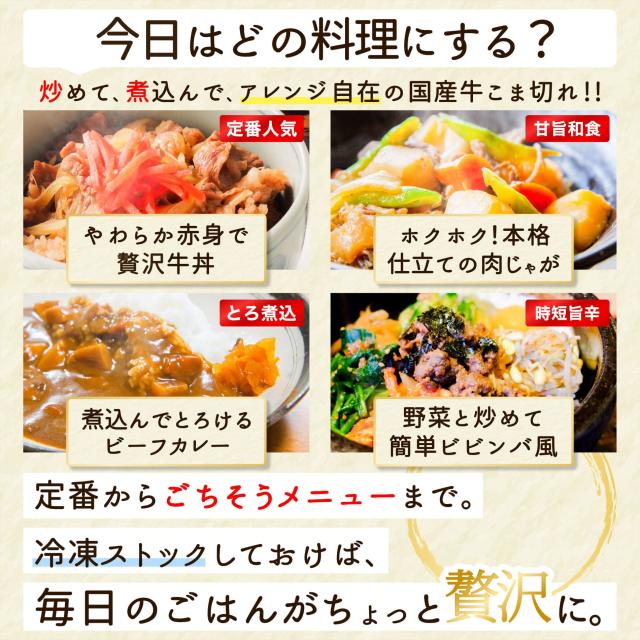 すき焼きや牛丼、カレーなどの普段料理にぴったりの国産牛こま切れです!