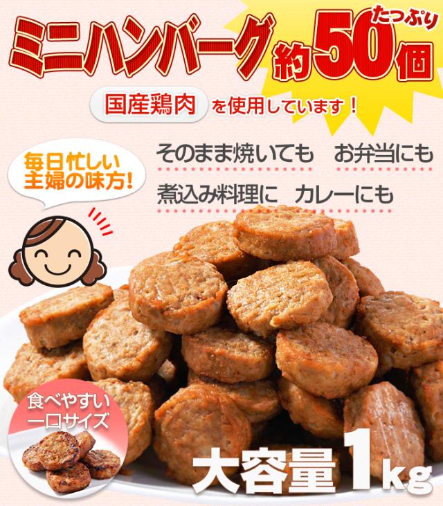 ハンバーグ メガ盛り約50個 一口サイズのミニハンバーグ(国産鶏使用)1kg まとめ買い 大量 冷凍惣菜 業務用 お惣菜 お弁当 ハンバーグ つくね 電子レンジ 温めるだけ 冷凍 朝食 弁当 おかず レンチン 訳あり レンジでチン 冷凍おかずセット 福袋 食品 鳥益