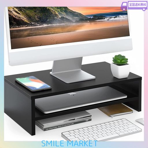 FITUEYES モニター台 モニタースタンド 机上台 PC台 42.5CM横幅 木製天板 二段式PC台卓上 デスクトップ用 机上 机上ラック 机上台 PCモニター台 パソコンラック 卓上 収納 整理整頓ブラックDT2042…