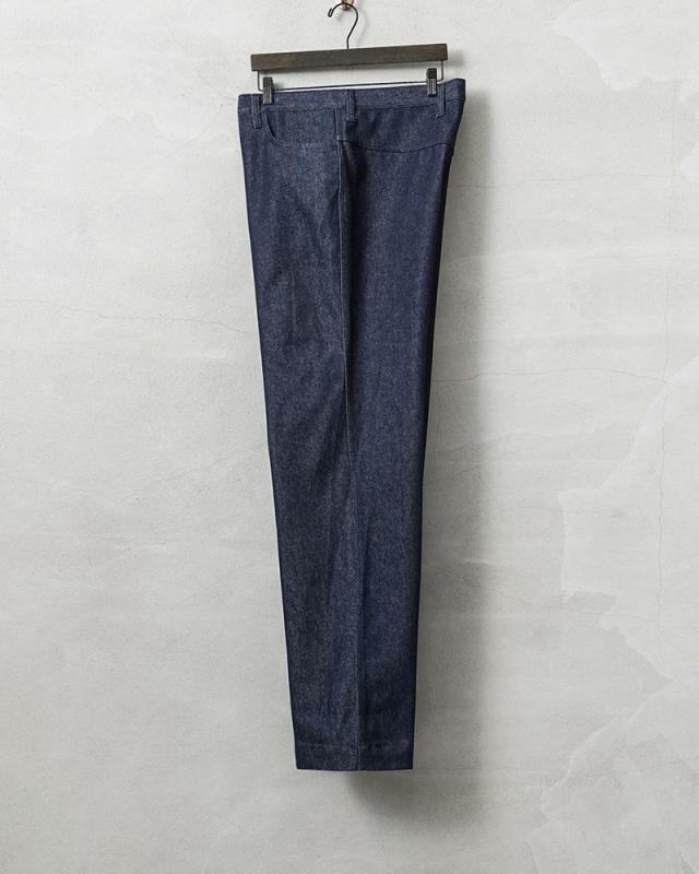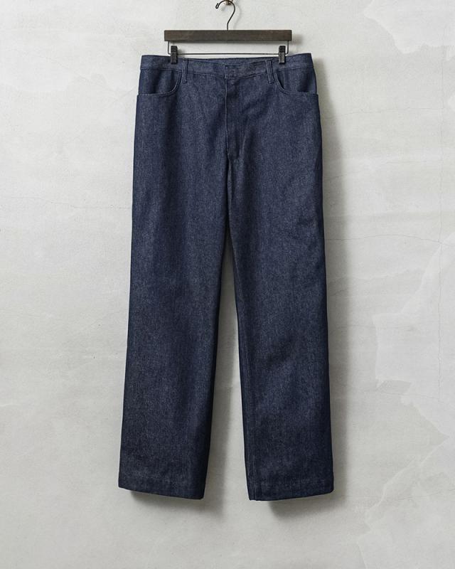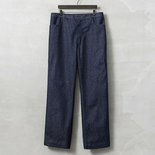 イタリア軍より放出された、デニム製のワークパンツが入荷しました。しかも、デッドストックなので洗いのかかっていないリジットの状態です!バックポケットが付属していない非常に珍しいデザインで、同系色の糸を用いたステッチワークにより、カジュアルな印象を抑え、様々なコーディネートに馴染みやすい点も特徴です。ゆったりとしたストレートシルエットで、野暮ったさを感じさせないデザインはイタリア軍ならでは。シンプルなデザイン故にデイリーユースにも取り入れやすく、履き込めば履き込んだ分だけ風合いの増す一本です。大変希少で市場に出回る事が中々無いレアなパンツです。