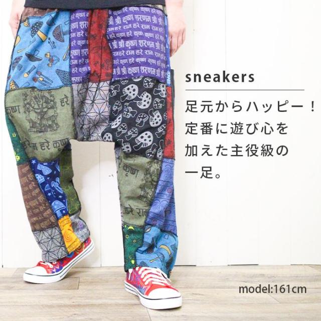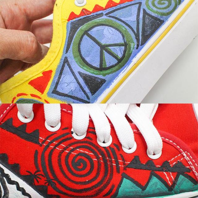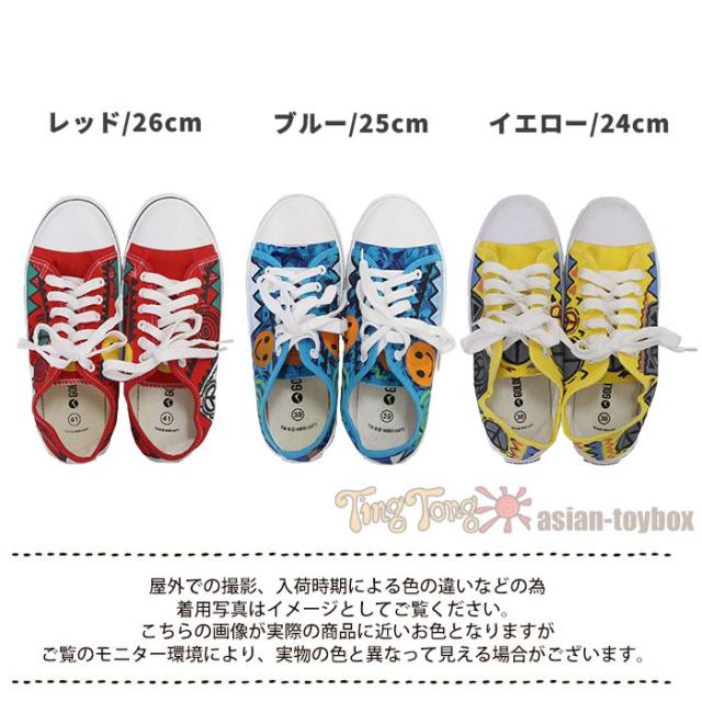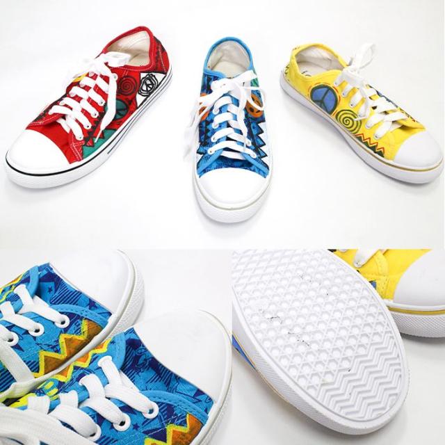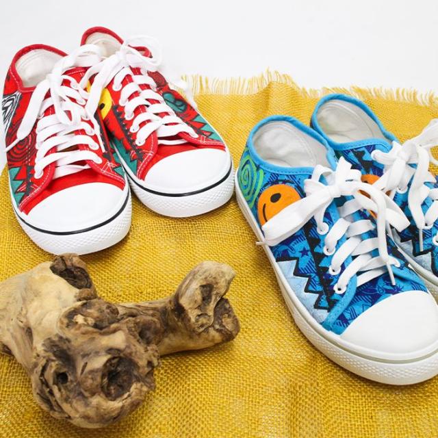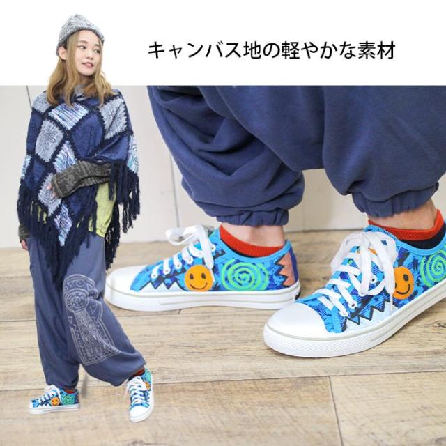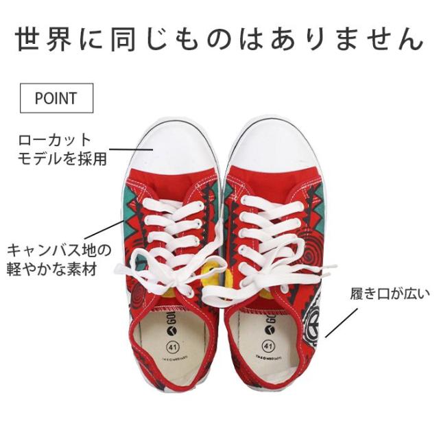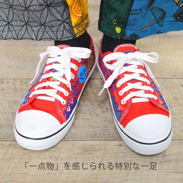 スニーカー 24cm 25cm 26cm 手描き 一点物 ハンドペイント ローカット !ヒッピーアート キャンバススニーカー エスニック レディース ユニセックス 男女兼用 メンズ 総柄 イラスト スマイル 派手 個性的 カジュアル