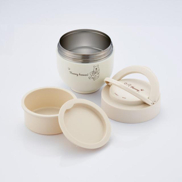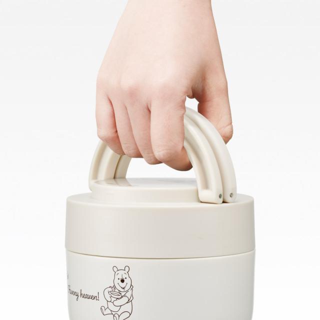弁当箱 540ml 折りたたみハンドル付ジャー プーさんシンプルロゴ ( プーさん フードポット ジャー 丼 どんぶり 携帯 持ち運び お弁当箱 食洗機対応 弁当 ステンレス 保冷 スープポット ランチポット フードジャー コンパクト )