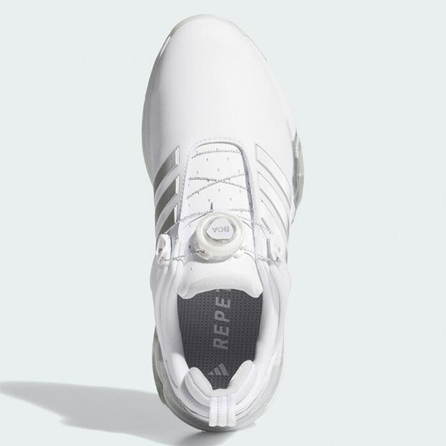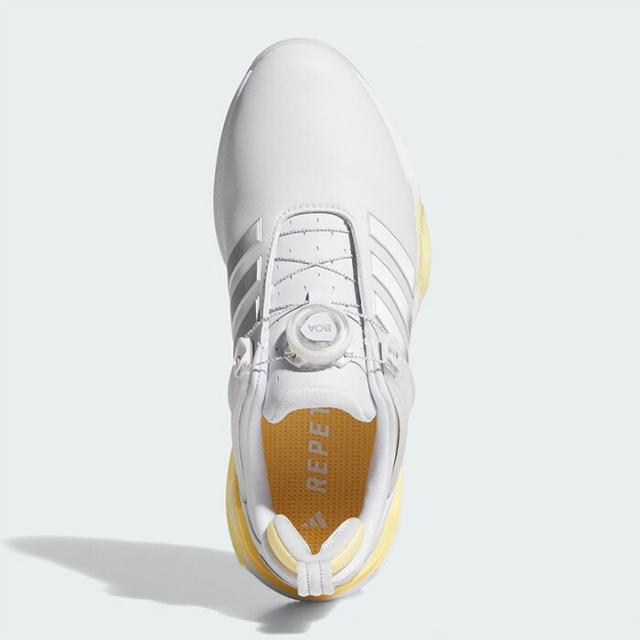 長時間のラウンドに対応する優れた反発力。アディダス リペティターが安定した反発力とクッショニングで、最後まで快適なプレーを支えてくれる。BOAフィットシステムにより、素早く簡単にフィット感を調整でき、自分好みの履き心地を実現。
