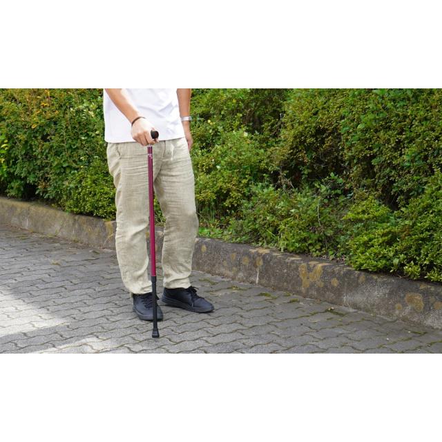75〜90cmの高さ調節に対応し、長時間の歩行でも疲れにくい設計です。