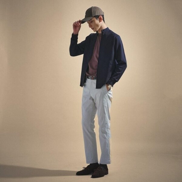 袖は程よい厚さの天竺で切り替え、異なる組織を組み合わせたドッキングデザインがさりげないアクセントに。