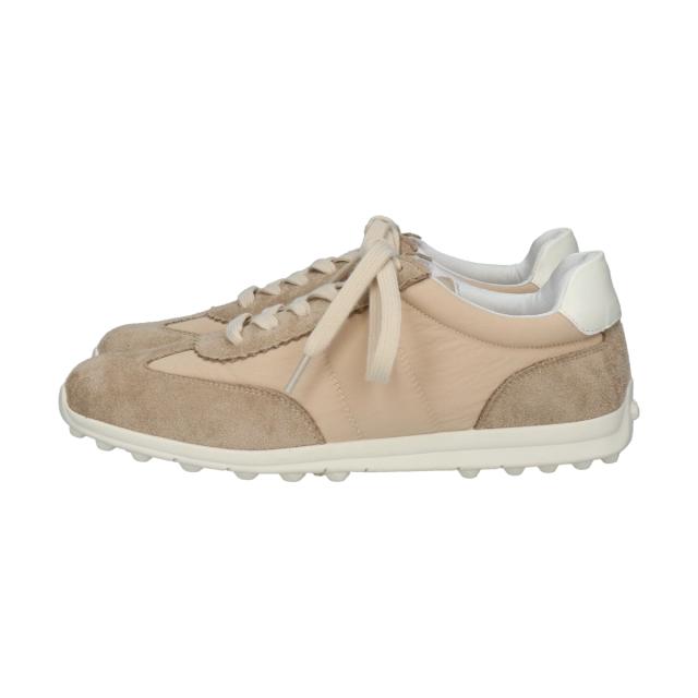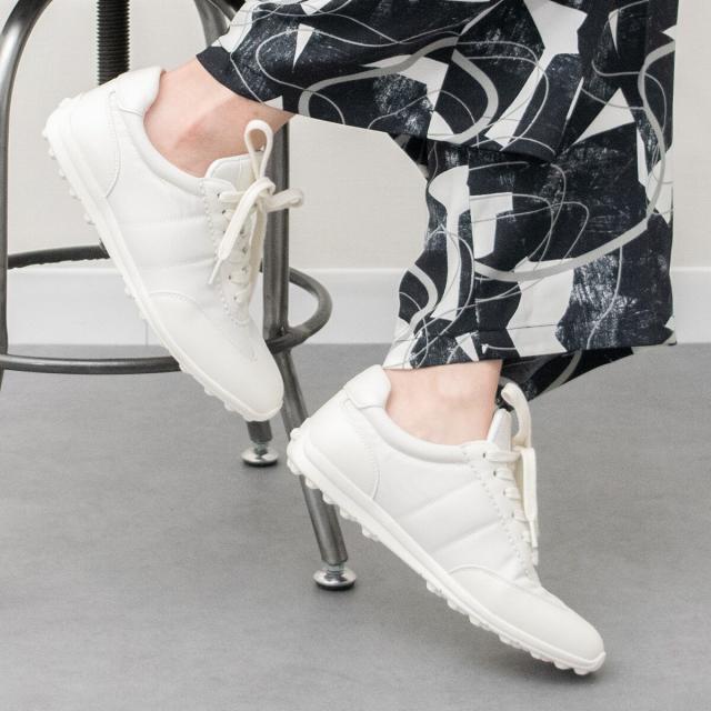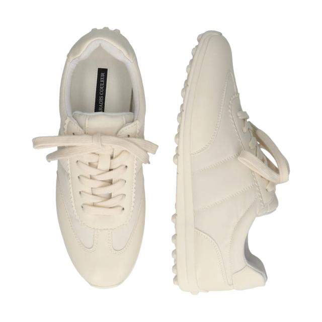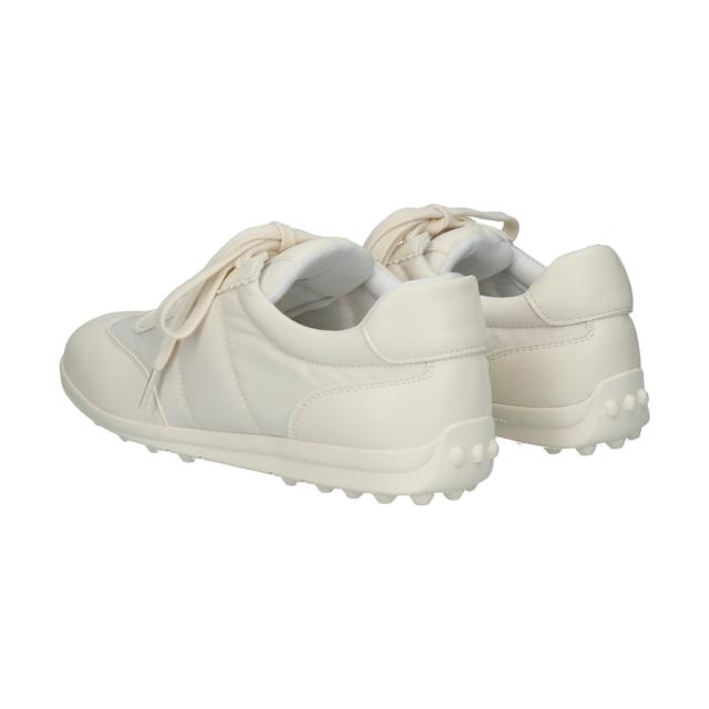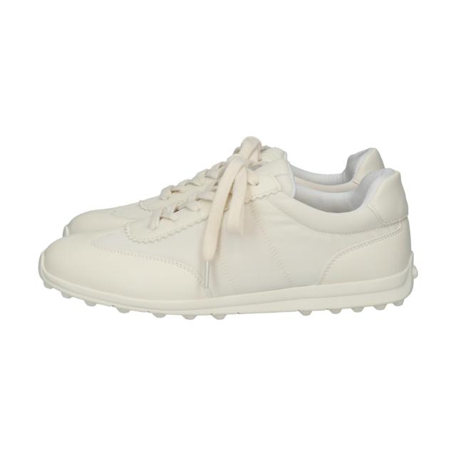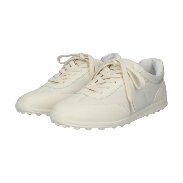 スッキリとしたデザインでクリーンな印象のロープロファイルスニーカーは、同色合わせの素材感が大人っぽい雰囲気です。