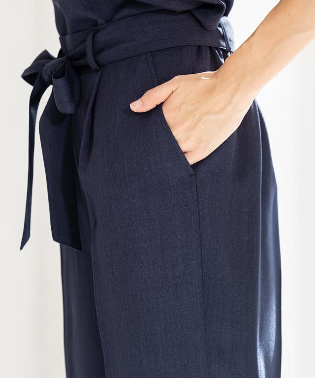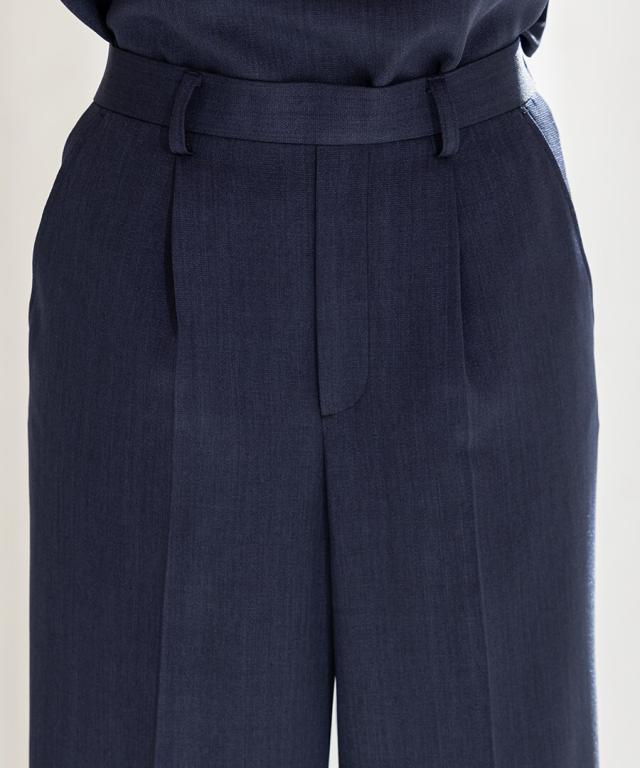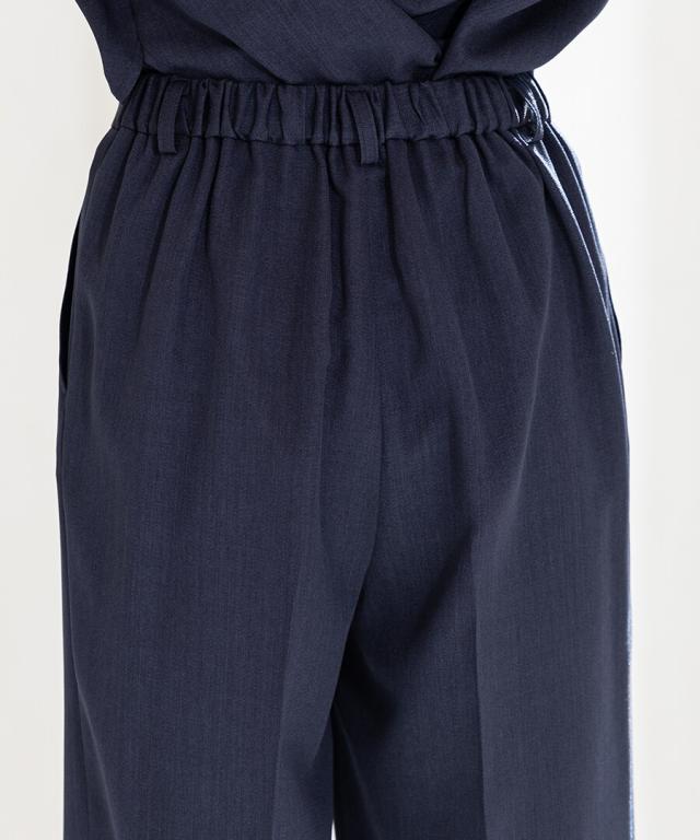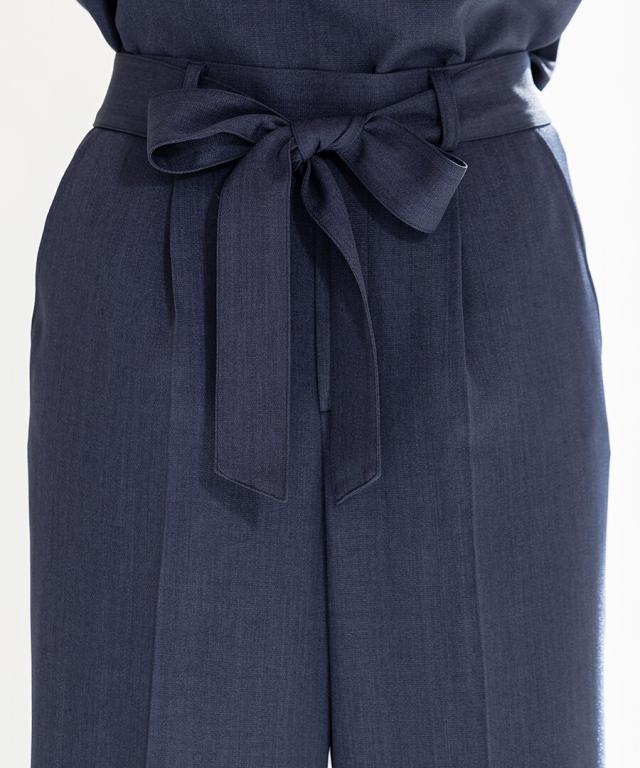 パンツは美脚が叶うテーパードデザインをご用意。ウエストの後ろがゴム入りなので、長時間ストレスなく着用いただけます。