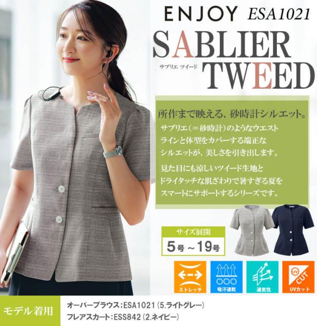 事務服 制服 接客 ENJOY エンジョイ オフィス カーシーカシマ オーバーブラウス ESA1021 サブリエツイード 2026年春夏新作 サイズ5号〜17号