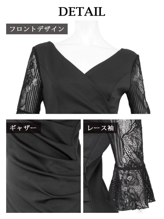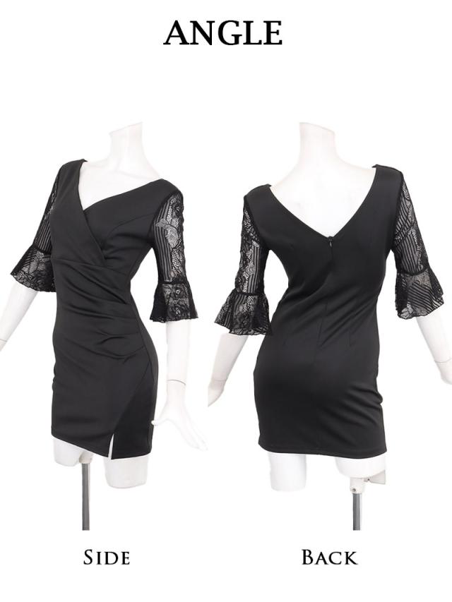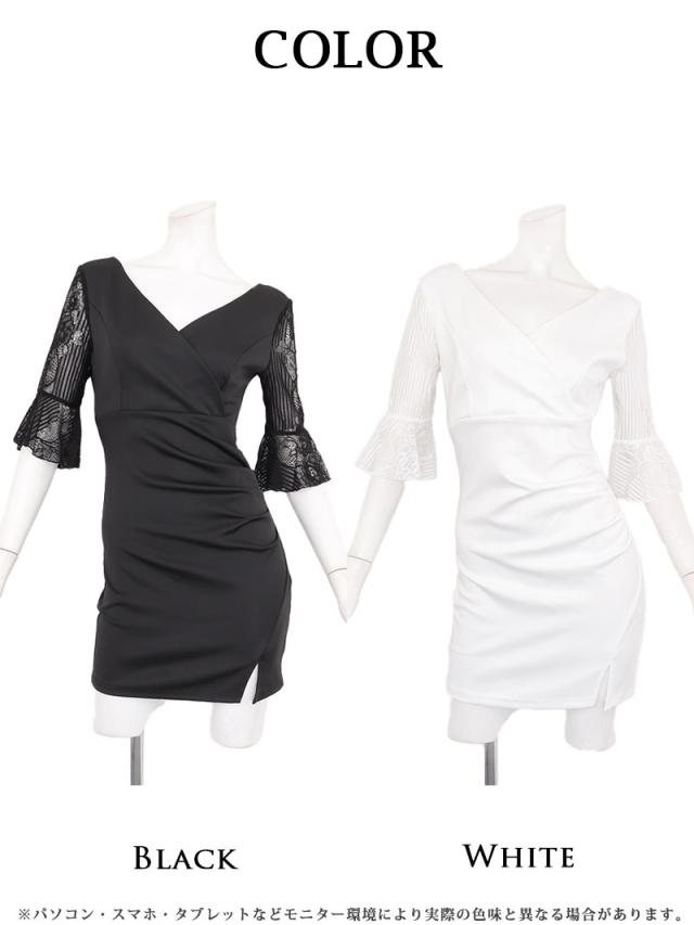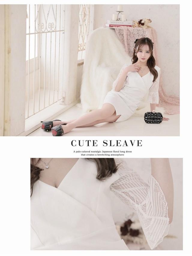 一部予約販売 ミニドレス RyuyuChick レース袖 ベルスリーブ 袖付き カシュクール ギャザー キャバ ドレス キャバ