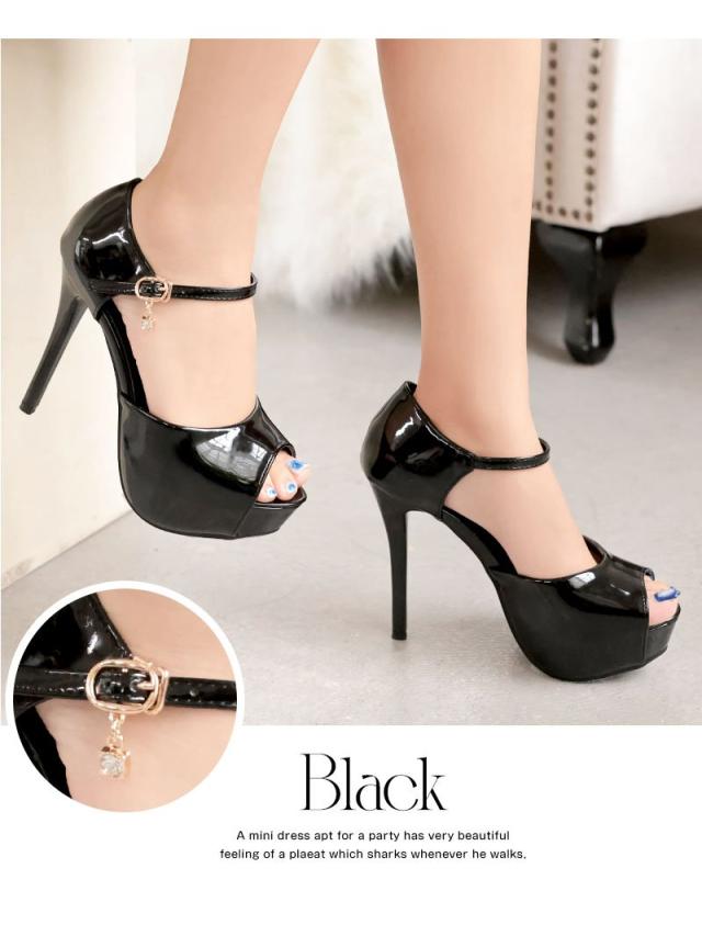 ☆シンプルな無地のエナメルサンダルは、ナイトワークからパーティーシーンまで幅広く活躍する万能な1足です。