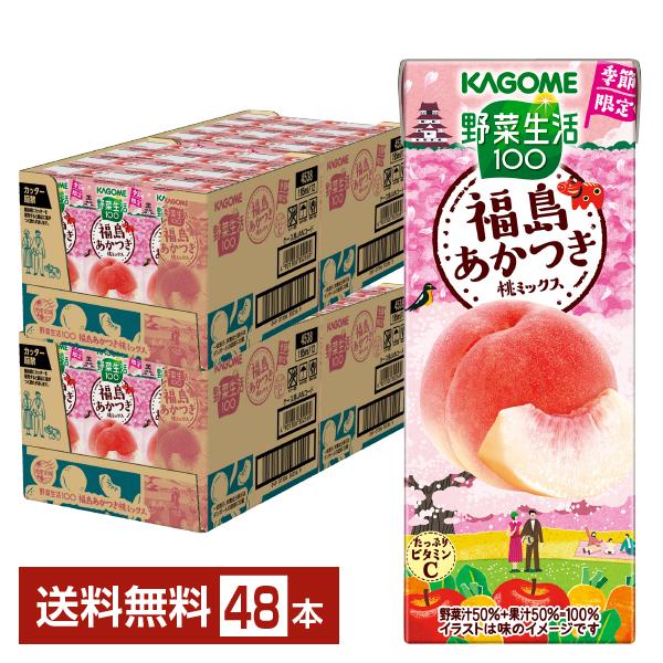 ポイント5倍 季節限定 野菜生活100 福島あかつき桃ミックス カゴメ 195ml 紙パック 24本×2ケース(48本) 送料無料