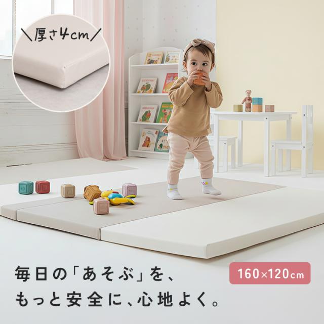 プレイマット 赤ちゃん ベビー 折りたたみ シームレス 厚手 4cm 防水 おしゃれ 極厚 クッション 大判 フラット 収納 軽量 こども 120×160 cm リビング お昼寝 遊び マット ごろ寝 お昼寝マット ヨガマット 出産祝い