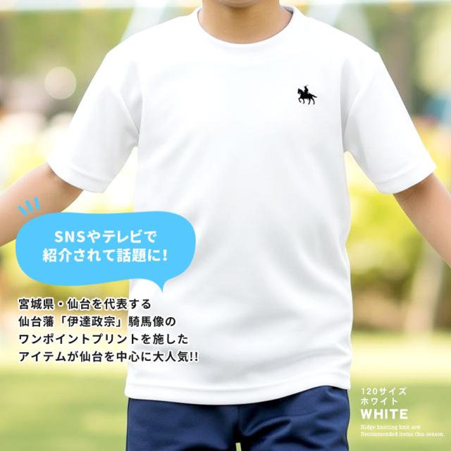 Tシャツ 伊達政宗 半袖 キッズ 男の子 女の子 ドライ 吸水速乾 UVカット 紫外線対策 こども 子供服 ワンポイント 政宗 仙台藩 騎馬像 トップス カットソー ユニセックス さらさら 涼しい クルーネック プリント (cab590002)