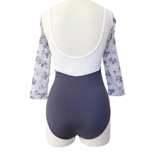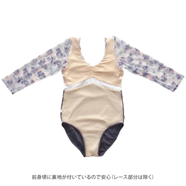 フローラル柄が華やかな、ジュニア・大人向けの7分袖レオタードです。