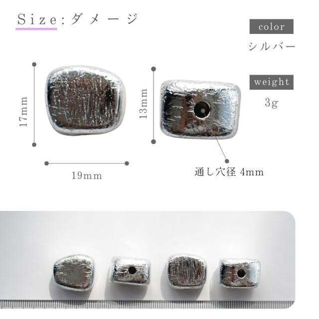 【内容詳細】ビッグメタルビーズ シルバー 2個 キューブ ユニーク