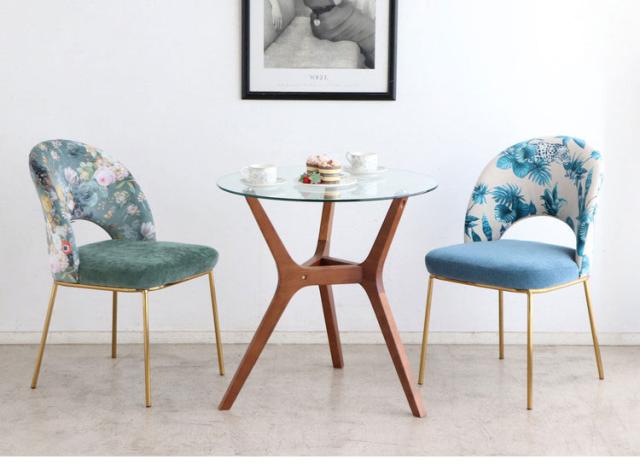 背もたれの存在感が空間に華やかさをプラスし、椅子としての機能性だけでなくインテリア性も高めています。