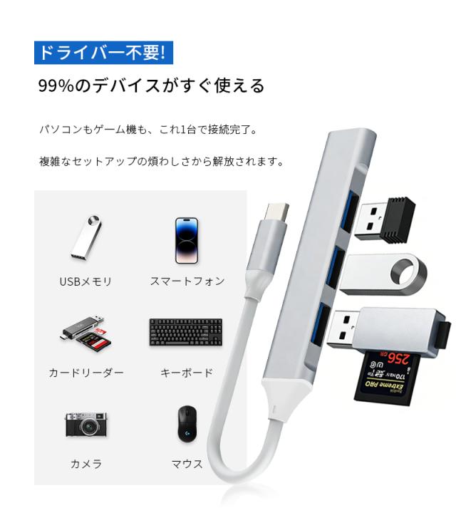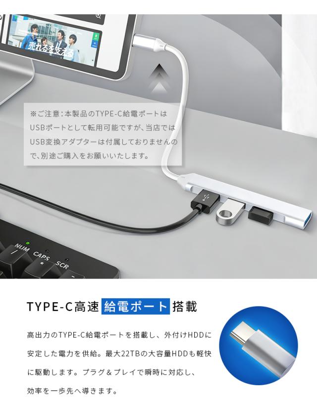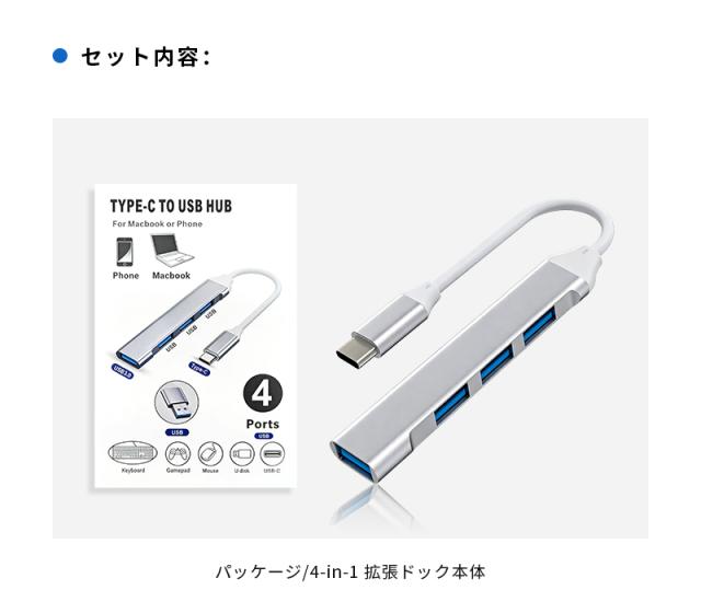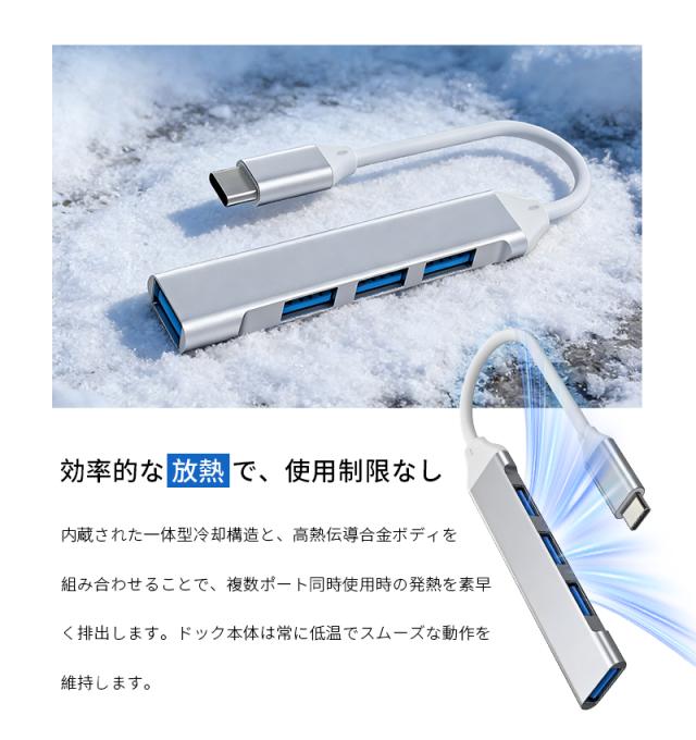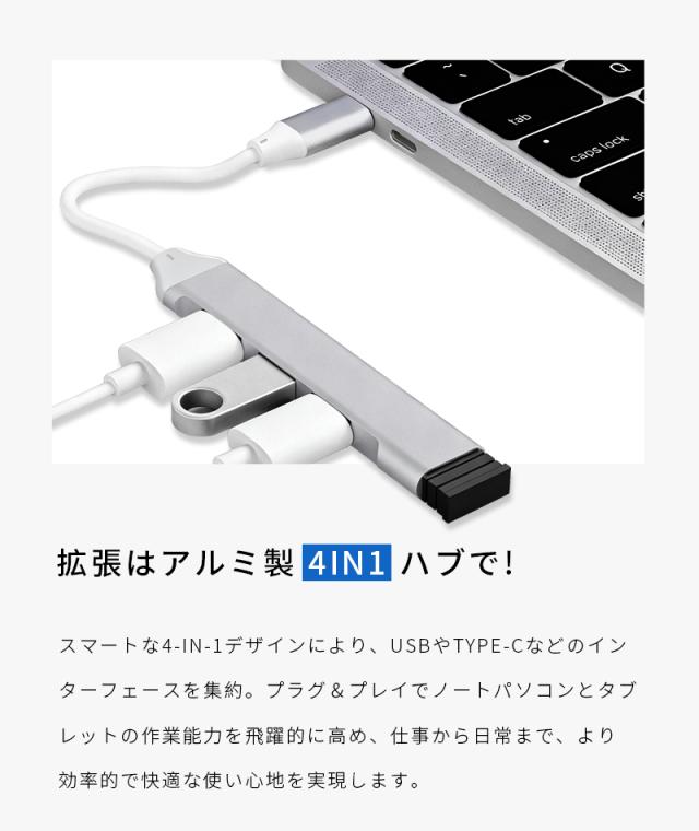 4-in-1 ドッキングステーション Type-C USB-Cハブ USB 3.0規格 5Gbps 高速データ転送 ポート増設 拡張アダプター 急速充電 放熱性に優れ MacBook/Windows/Android/Chromebook対応 包括的な互換性 安定通信 多設備同時使用 最新作 コンパクト【PL保険加入済み製品・安心】