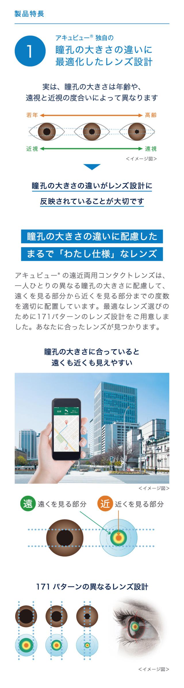 瞳孔の大きさに最適化した、独自のレンズ設計。