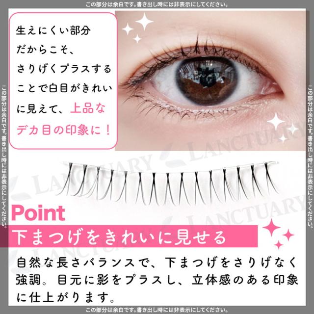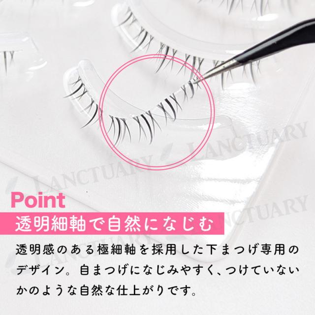 【透明細軸で自然になじむ】透明感のある極細軸を採用した下まつげ専用のデザイン。自まつげになじみやすく、つけていないかのような自然な仕上がりです。