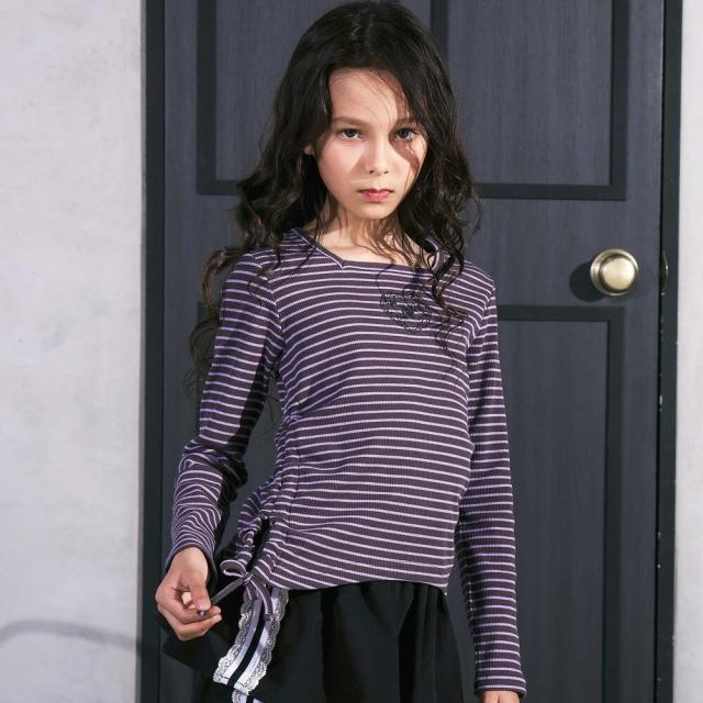 【10%OFF 2026春夏 ジュニア 子供 女の子】nexchic(ネクシック) BeBe スクエアネックサイドギャザーテレコ長袖Tシャツ