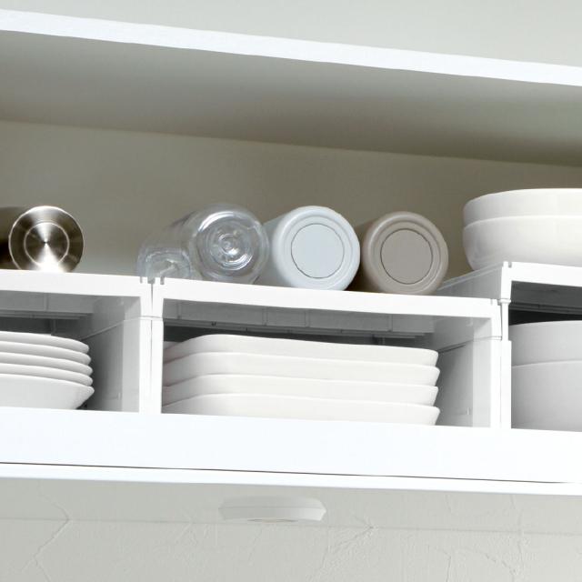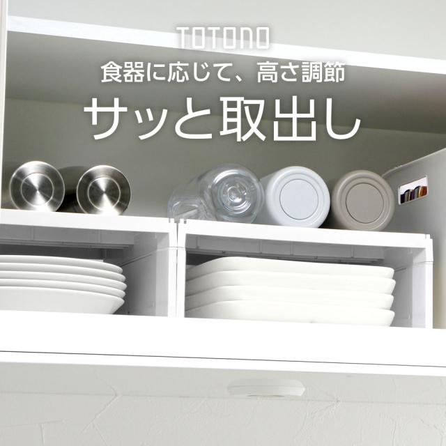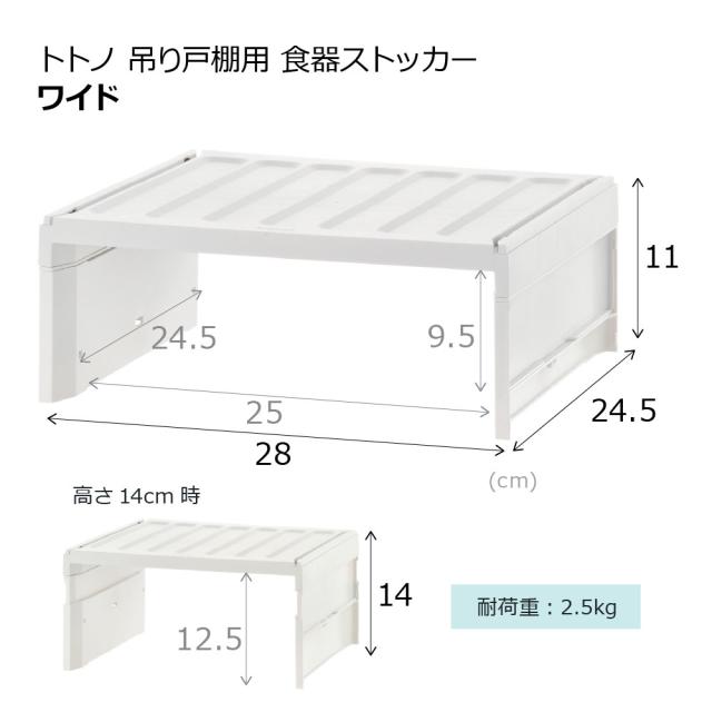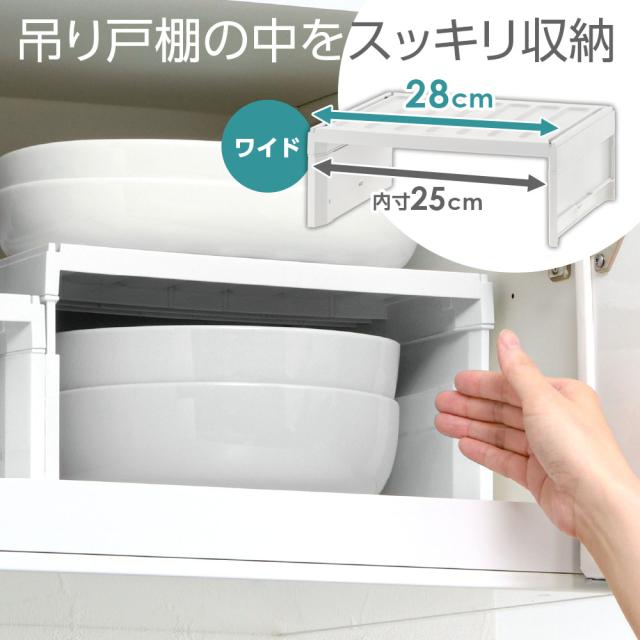 トトノ 吊り戸棚用 食器ストッカー ワイド | 食器収納 幅28cm キッチン収納 台所収納 高さ調節 整理 吊り戸棚収納 戸棚収納 プラスチック 白 ホワイト 水筒収納 ボトル収納 皿 抗菌