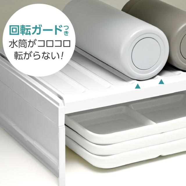 回転ガードつき天板に水筒を置いても転がらない、回転ガードの溝つき。