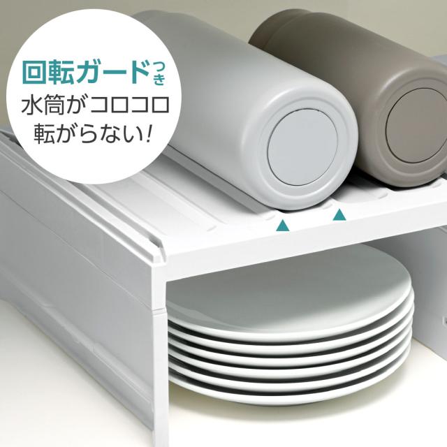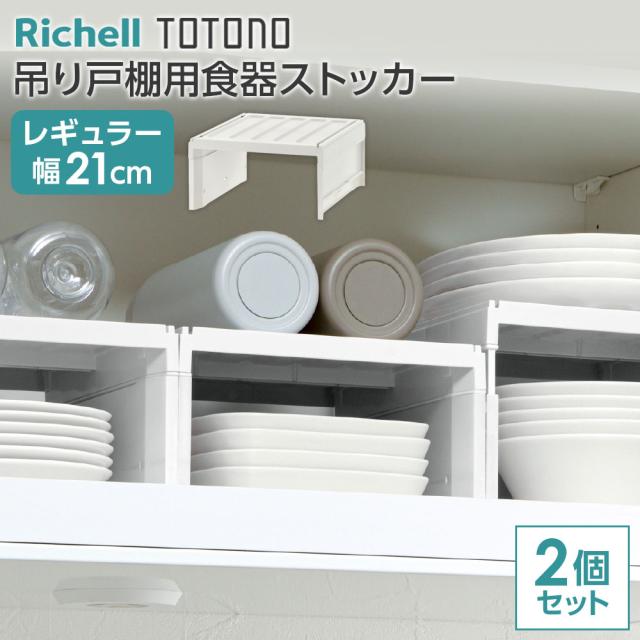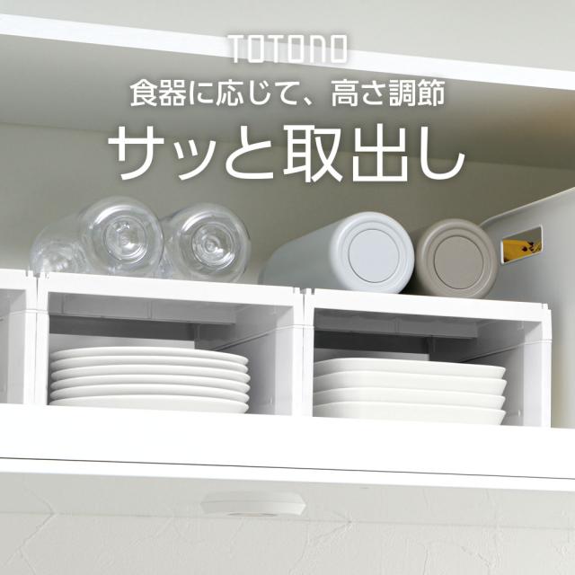 トトノ 吊り戸棚用 食器ストッカー レギュラー 2個セット | 食器収納 幅21cm キッチン収納 台所収納 高さ調節 整理 吊り戸棚収納 戸棚収納 プラスチック 白 ホワイト 水筒収納 ボトル収納 皿 抗菌