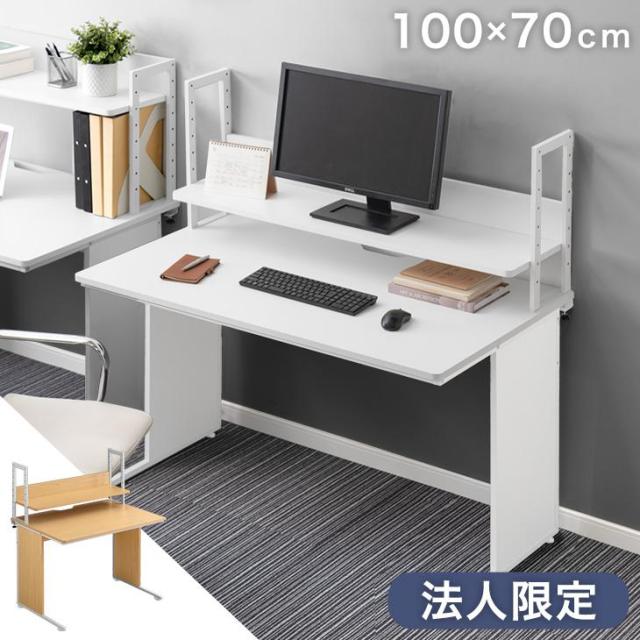 ★法人様限定★ 机上ラック付き オフィスデスク 幅100 奥行70 デスク 平机 ワークデスク PCデスク パソコンデスク 事務デスク 作業机 事務机 仕事机 机 棚 棚付き 上棚 机上ラック オフィス リモートワーク おしゃれ 木目