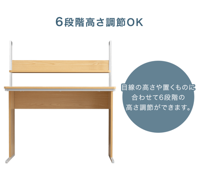 L上棚は収納物に合わせて6段階高さ調節OK