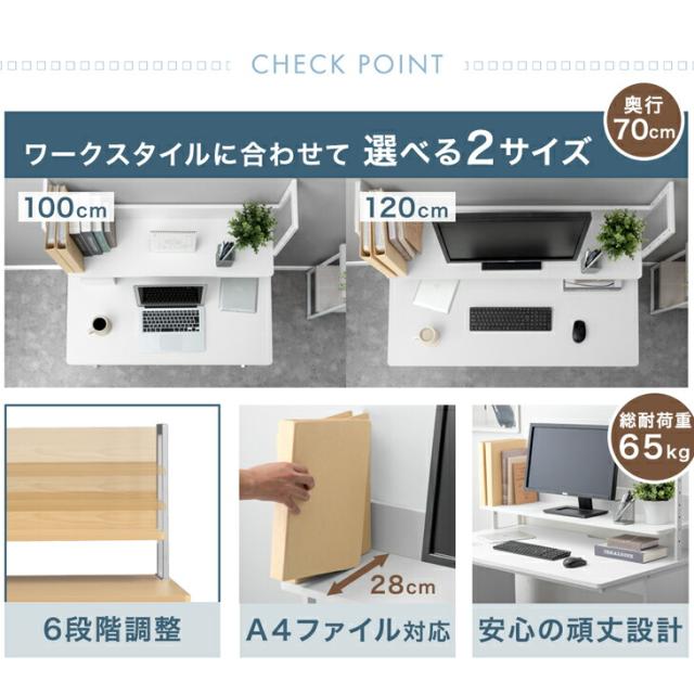 オフィスデスク パソコンデスク シンプルデスク スチールデスク 作業机 棚 卓上棚 収納 会社 在宅ワーク 在宅勤務 テレワーク リモート 木 白 ホワイト シンプル 100cm【商品番号:99900575】