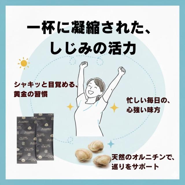 しじみエキス配合の粉末しじみスープを1杯分ずつ個包装。