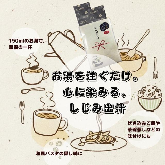 パンダのイラストと「ありがとう」のメッセージ入りパッケージが印象的なしじみスープギフト。