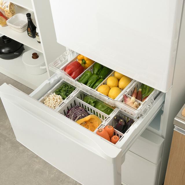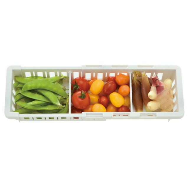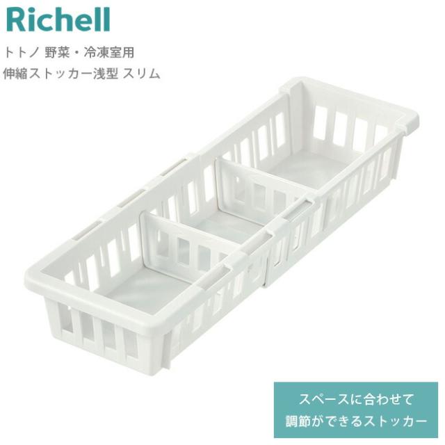 冷蔵庫 収納 トトノ 野菜・冷凍室用 伸縮ストッカー 浅型 スリム ストッカー 野菜 野菜室 スライドトレー活用 収納ボックス 収納ケース 仕切り付き 通気性 調節 伸縮 キッチン 整理 抗菌加工 リッチェル Richell