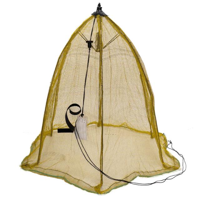 パラソル型の防鳥ゴミネットです。傘のようにパッと開き、上からかぶせるだけで簡単に設置できます。カプサイシン入りの黄色いネットがカラスの視界を妨げます。