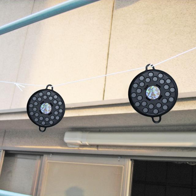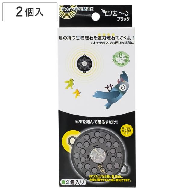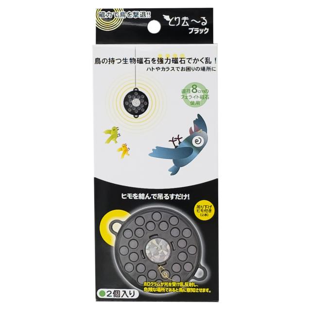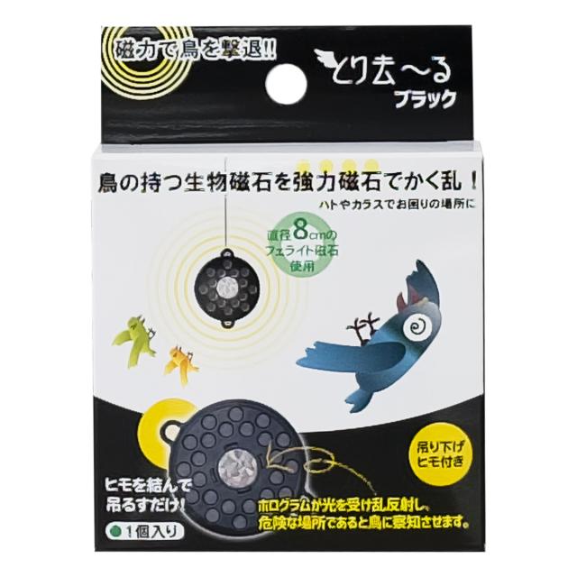 強力磁石で鳥を追い払う「とり去〜る」です。ハトやカラスでお困りの場所に吊るすだけで害鳥を寄せつけません。
