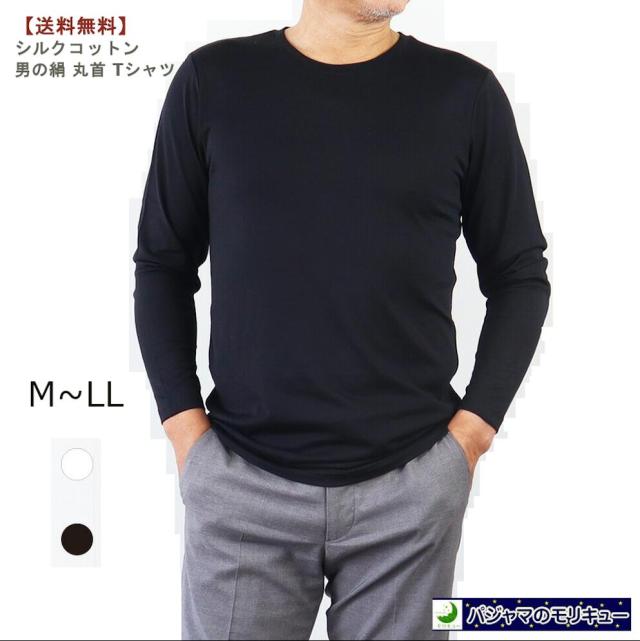 メンズ 男性用 紳士 シルクコットン 男の絹 丸首 Tシャツ[メール便可] インナーとして または アウターとして、シルクの光沢感とコットンの通気性が融合し、快適さと高級感を兼ね備えています。春夏のみならず重ね着にも最適な長袖デザインで季節を問わずご利用いただけます