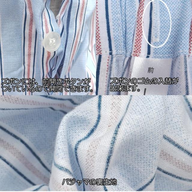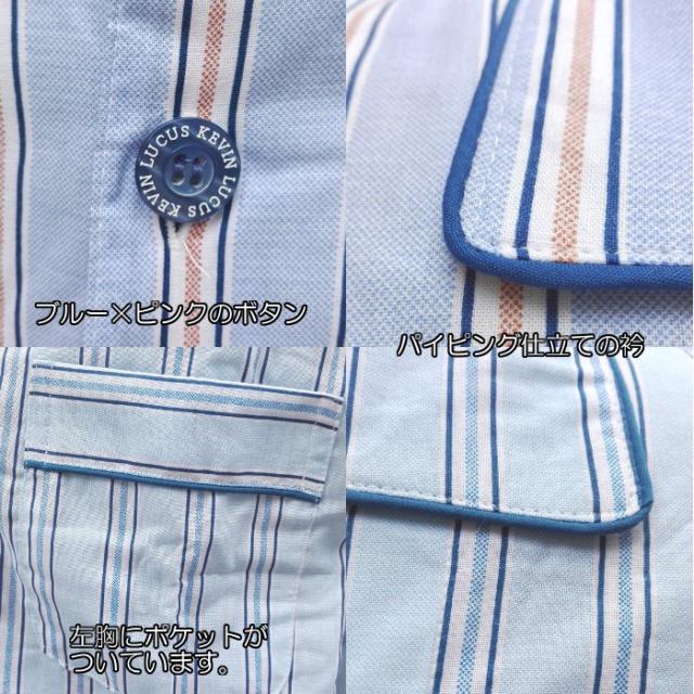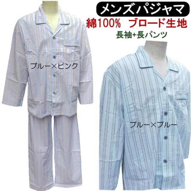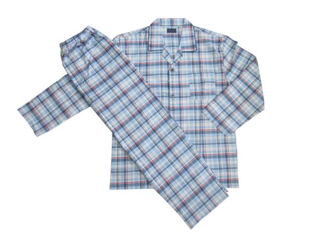 メンズ パジャマ 【春・夏】 紳士 長袖・長ズボン ゴム取り換え口付き 綿100% 布帛生地 格子柄 ブルー・水色 M・L ルームウェア ナイトウェア 疲労回復 安眠