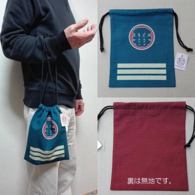 江戸火消し 染抜巾着 綿100% 【日本製】 全部で8種類 紺とエンジ 約20cm×24cm