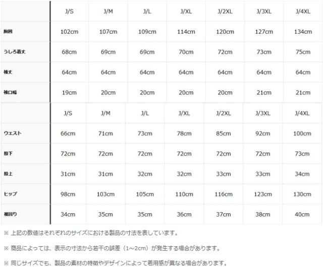サイズ:身長 / チェスト / ウエスト